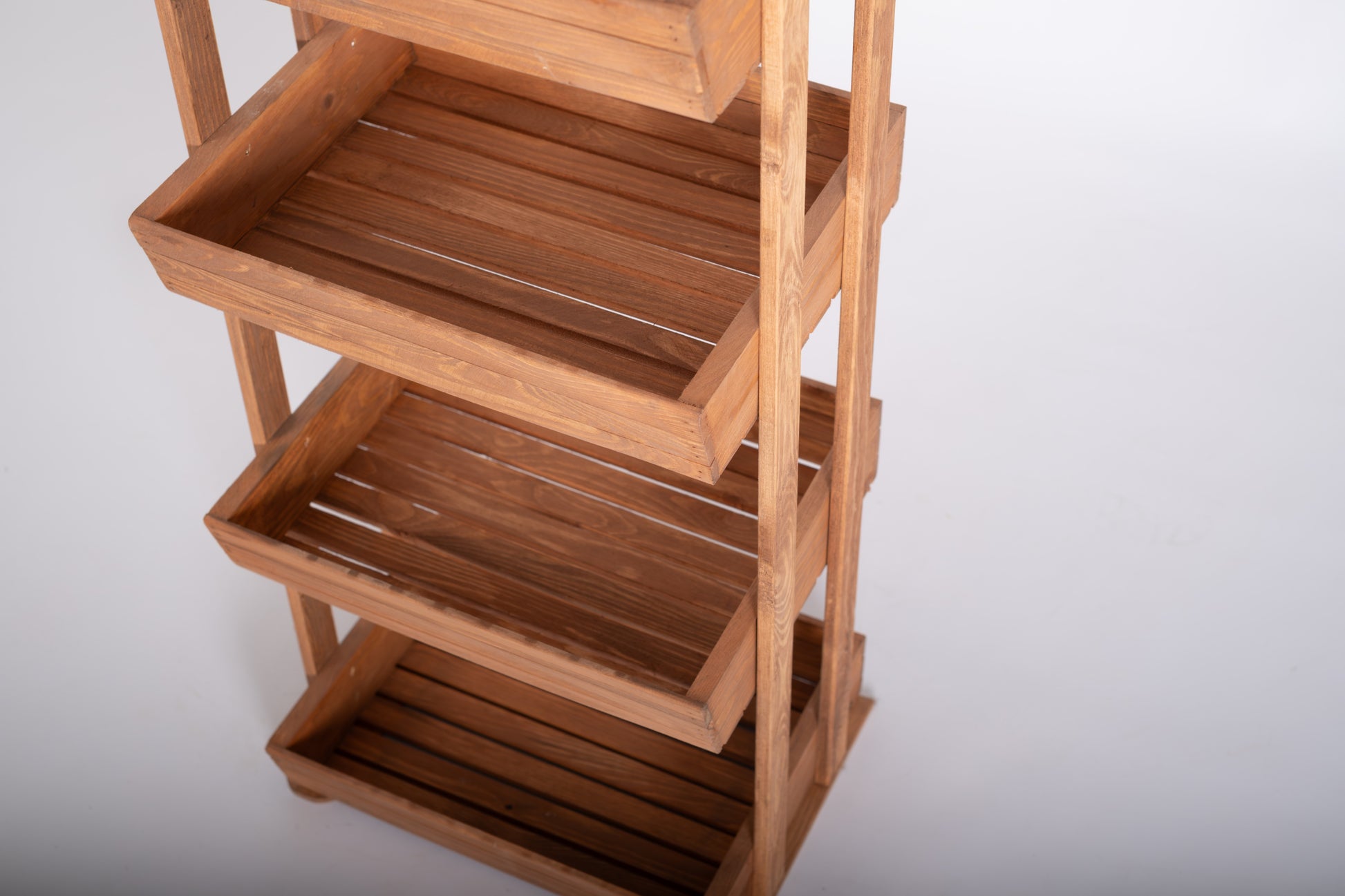 Fonctionnel et compact, ce porte-légumes à 4 niveaux (79×34×27 cm) optimise ton espace cuisine. Disponible en version fixe ou à roulettes selon tes besoins.